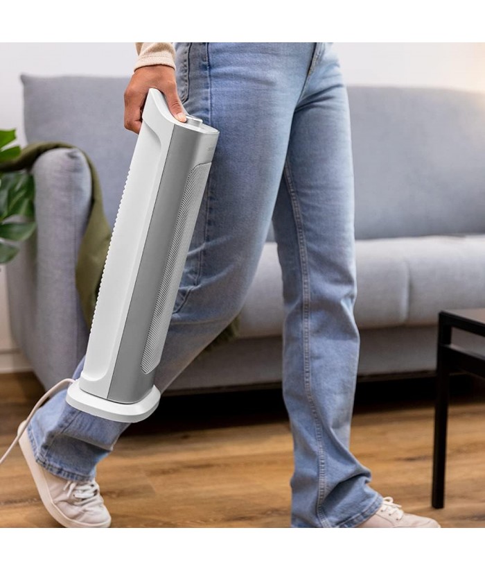 Suitable for every situation, this ceramic heater features a Vertical Design, which gives the product great stability, lightness, compact size, and easy handling for moving between rooms. It features a triple safety system: automatic shutoff in the unlikely event of a fall or overheating, and a grille that prevents fingers from entering the heater.