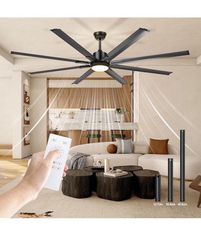 Safety Certification & Easy Installation: This 8-blade ceiling fan light has passed CE, EPR, and CB certifications and supports tilt-mount or recessed installation (tilt angle less than 15°). The ceiling fan light comes with complete accessories, clear installation guides and videos, and is equipped with 5", 10", and 16" downrods to help you easily complete the LED ceiling fan installation.