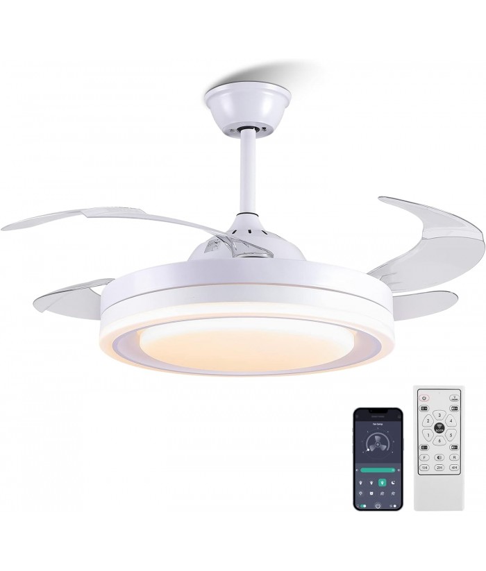 • 【106cm Retractable Fan】This retractable fan features an innovative retractable blade structure design. This retractable ceiling fan features a metal body and 4 transparent ABS blades that automatically retract or are invisible when the fan is off.