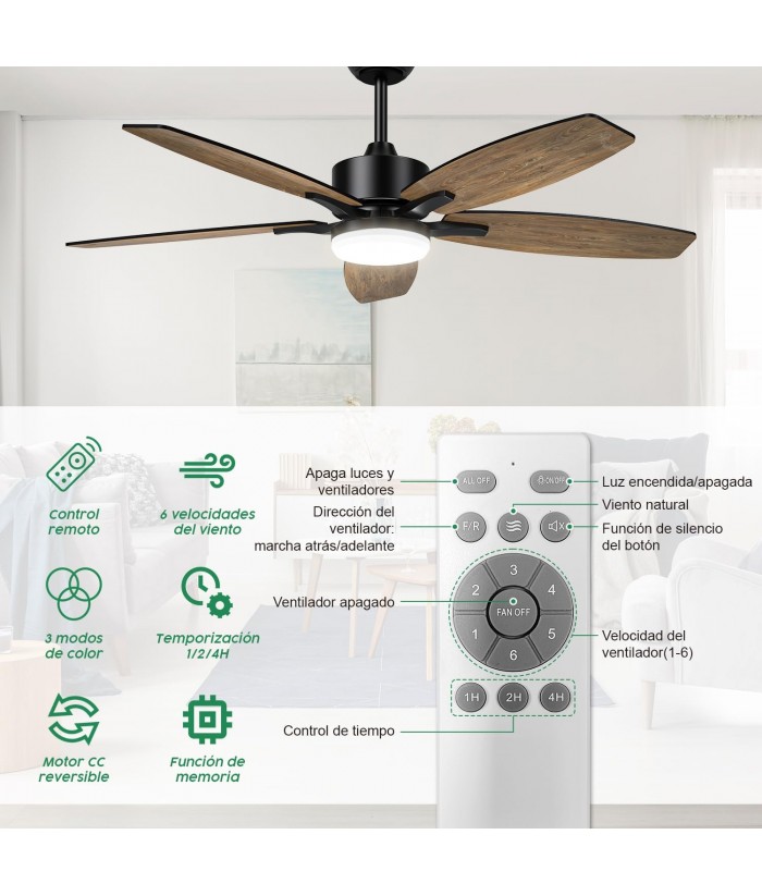 Ingenious Small Design: The 106cm five-blade fan light features two-tone wooden blades. The fan blades are connected to the motor with a delicate small-leaf handle, breaking away from the traditional fan blade connection structure. Choose from modern rustic black or wood-grain styles for a distinctively stylish decor.