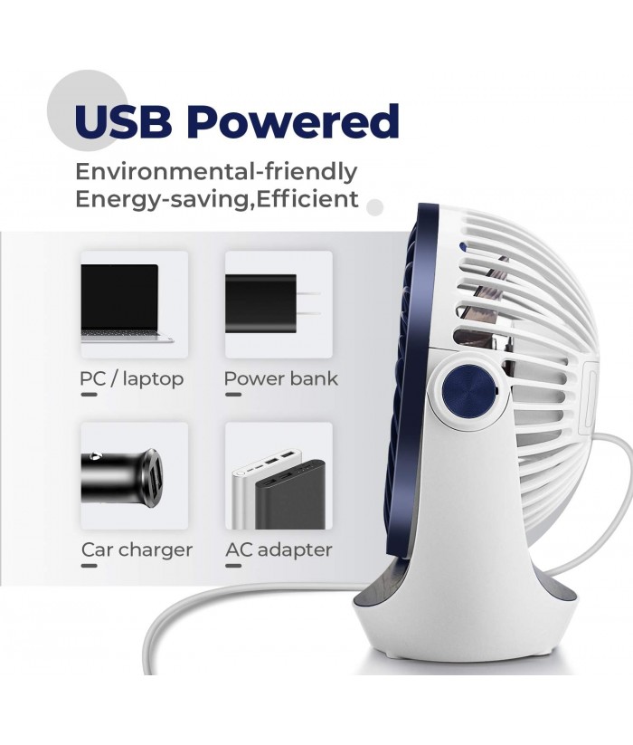 【USB Powered】It comes with a USB cable compatible with all USB ports, such as computers, power banks, wall chargers, and any other USB power source. Simply plug it into the power source throughout the day or night. (Note: This fan does not have a battery.)
