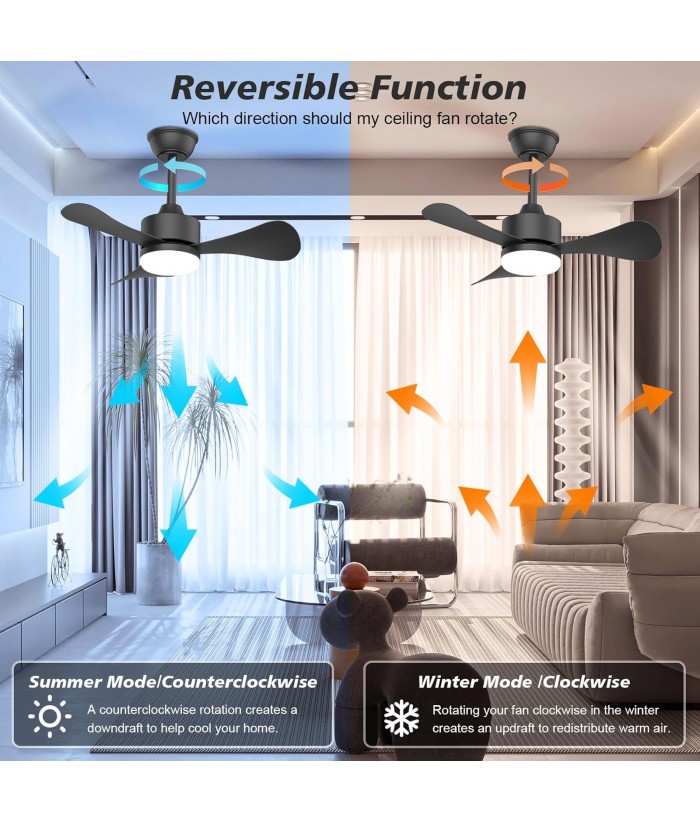 Energy-Saving and Reversible DC Motor: The ceiling fan with light for bedrooms features a high-performance DC motor that saves more than 75% energy compared to traditional AC motors. In the summer, it creates downward airflow to keep you cool; in the winter, it generates upward airflow to recover lost heat from the ceiling and distribute it evenly throughout the space. The dual-direction fan improves air circulation for greater comfort in both winter and summer.