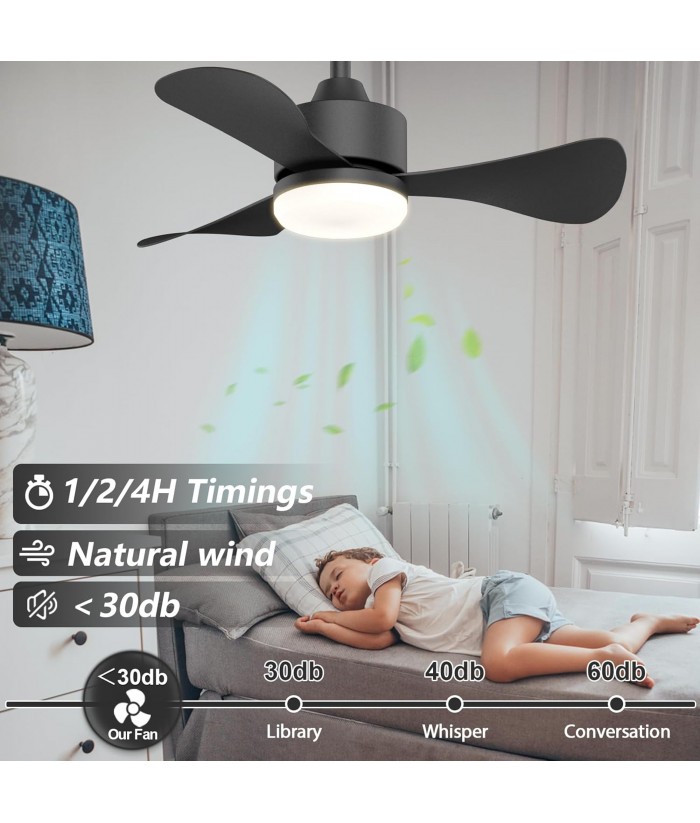 Quiet Ceiling Fan: This small bedroom ceiling fan is an excellent choice for homes with babies or noise-sensitive seniors. With a noise level as low as 30 dB during operation, you can easily ignore the fan's presence while you focus on your work or studies. The sound of the fan moving the air becomes insignificant, like a whisper in a serene breeze.