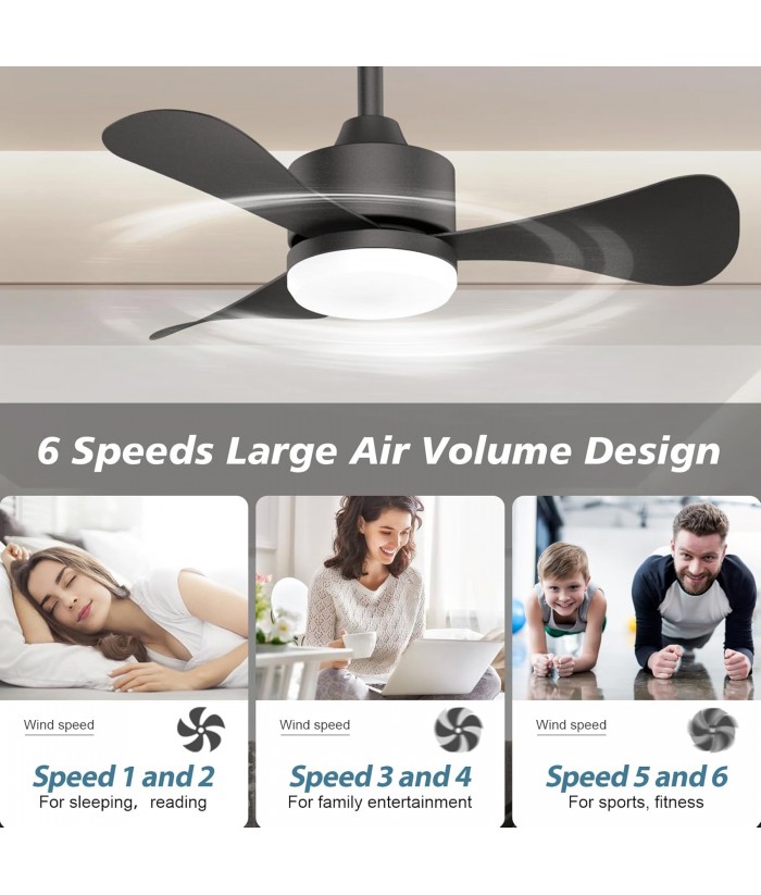 Multifunctional Remote Control: This small black ceiling fan offers 6 speed settings to customize the airflow from gentle breezes to robust drafts. Additionally, the small ceiling fan with light offers three color temperature options and supports timing (1/2/4 hours). With the remote control, you can easily control the ceiling fan in your room. The remote control also comes with a wall-mounted remote control holder, so you don't have to worry about losing it.