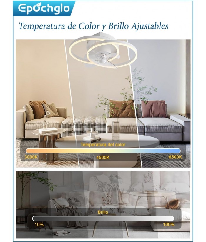 • 【Adjustable Ceiling Fan Light】The ceiling fan adjusts the color temperature (3000K-6500K) and brightness (10%-100%) with a remote control or APP. With 2-hour timer, memory, sleep, and natural wind modes, it is efficient and quiet (Please note that the wall switch cannot control the fan's switching).