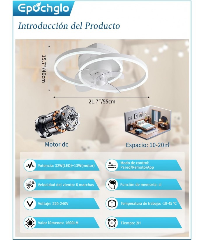 • 【High-Quality Ceiling Fan】Designed with a high-quality copper motor, our DC ceiling fan with light offers exceptional performance and speed. Perfect for bedrooms, living rooms, kitchens, dining rooms, children's rooms, offices, and more, with a range of 10-20㎡.