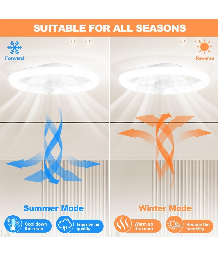【6 Wind Speeds & Quiet Fan】The quiet fan offers six different wind speed options, allowing you to choose the ideal wind speed for your comfort needs. Additionally, the modern ceiling fan operates with very little noise, creating a quiet and peaceful environment, allowing you to live your life noise-free. The ceiling fan has summer and winter modes.